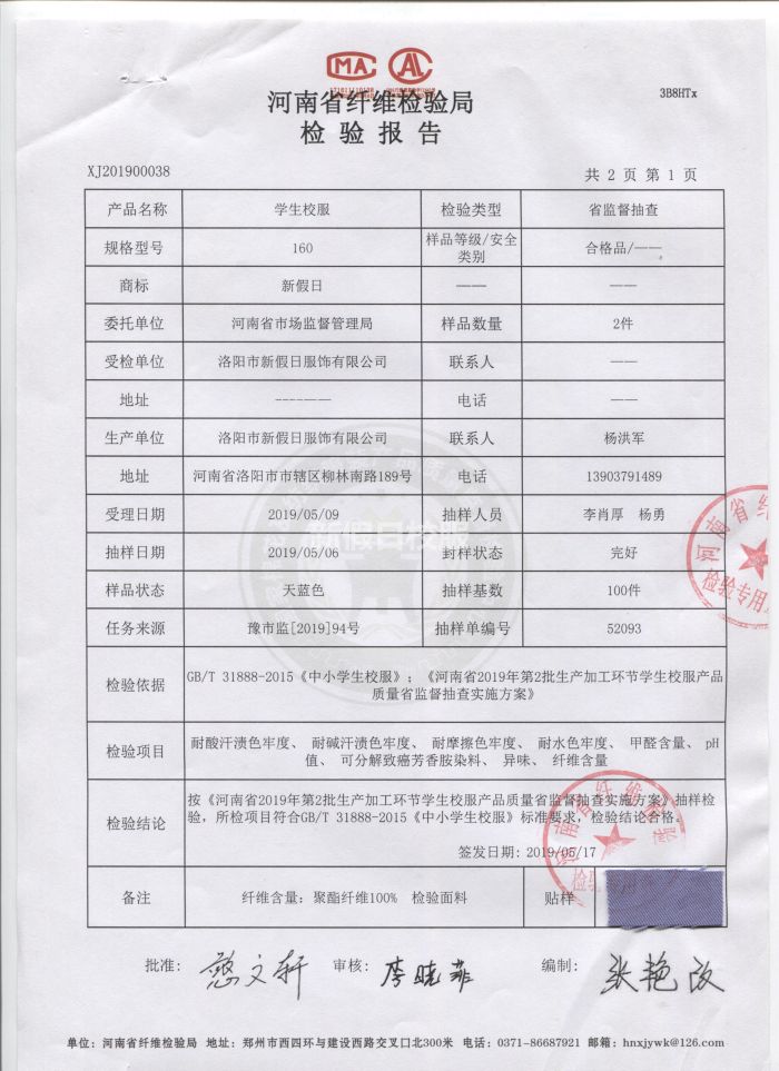 學(xué)生校服檢驗(yàn)合格報(bào)告