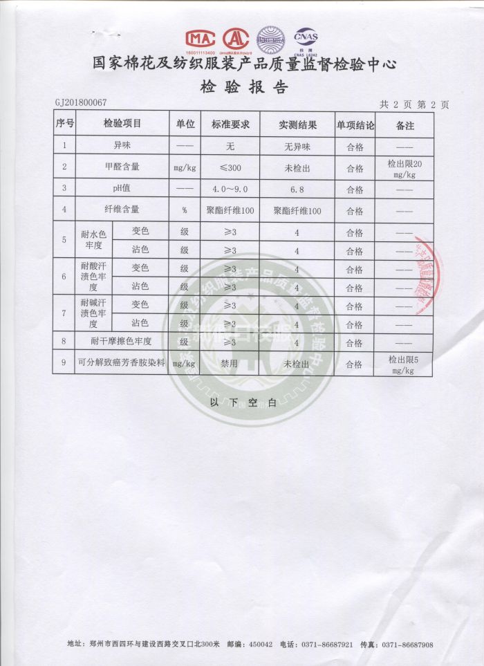 下一篇:上衣(秋冬裝)檢驗合格報告