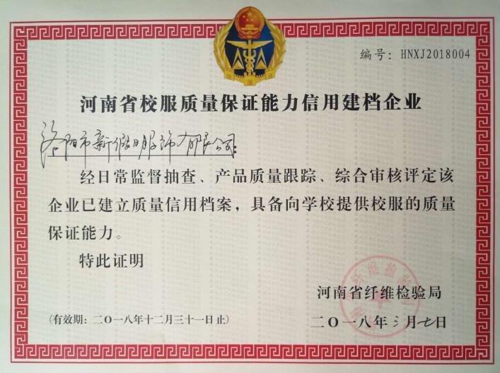 校服建檔企業(yè)證